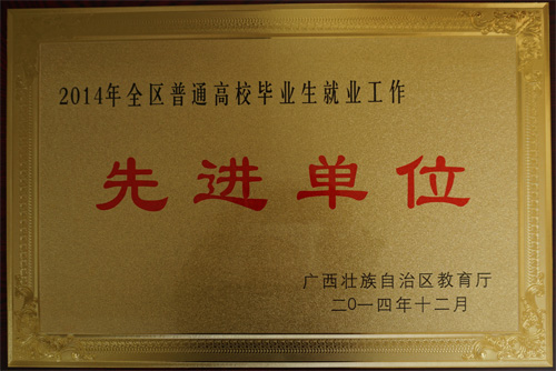 近日,根据广西自治区教育厅下发的《关于公布2014年度广西高校毕业生就业工作考核先进单位名单的通知》(桂教学生〔2014〕11号)获悉,Beat365官网喜获“2014年全区普通高校毕业生就业工作先进单位”称号。