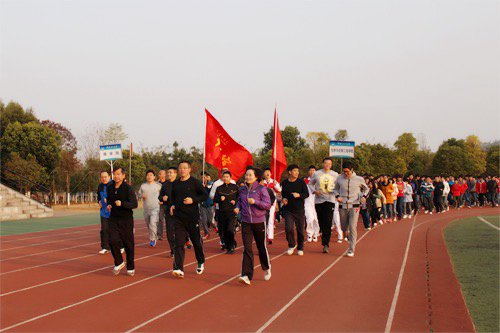 盛世又逢新岁月,春来更有好花枝。1月1日早上,迎着2015年的第一缕曙光,Beat365官网在雁山校区运动场隆重举行庆祝2015年元旦升国旗仪式暨万人晨跑活动。学校党委书记张学洪,党委副书记、纪委书记陈贵英,党委常委、副校长陈学军,体育教学部教师、全校学工干部、雁山校区全体学生共计万余人参加了升国旗仪式暨万人晨跑活动。 在万名师生的注目礼下,英姿飒爽的国旗护卫队队员迈着整齐的步伐,护送五星红旗正步走到升旗台前,伴随着庄严雄壮的国歌奏响,鲜艳的五星红旗缓缓升起,全场师生庄严肃立,深情凝视着飘扬的五星红旗,表达着对祖国无限的热爱和崇高的敬意,寄托着新年美好愿景。 学校党委副书记、纪委书记陈贵英在升国旗仪式上代表学校党委、行政向全校广大师生员工致以新年的美好祝福和亲切问候。她与大家一同回顾了2014年学校取得的辉煌业绩,特别对广大同学在2014年努力学习、刻苦锻炼、勇于实践、大胆创新所取得一系列骄人成绩表示了高度的赞赏。她希望广大同学在新的一年继续保持良好的精神风貌和饱满的学习热情,满怀梦想与激情,自觉肩负起历史赋予的崇高使命,让勤奋学习成为青春远航的动力,让增长本领成为青春搏击的能量,不断开创属于自己的美好未来。 在副校长陈学军的发令枪声中,学校领导与师生们一起,迎着初升的太阳,伴随着校歌优美的旋律,在运动场和校园主干道内健康奔跑,用运动迎接新年的到来,共同续写全民健身新篇。
