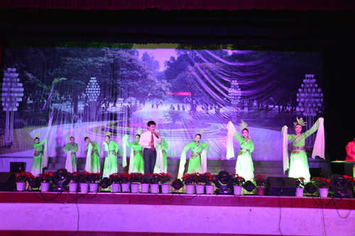 2014年12月12日晚,由校工会主办的2015年教职工元旦文艺演出选拔赛在学校体育馆三楼成功举行。学校党委副书记、工会主席王赣华到场观看了选拔赛演出情况,在演出结束后对节目提出了具体的修改意见,要求认真完善节目,不断提高演出质量,力争为全校师生奉献一台高质量的元旦晚会。