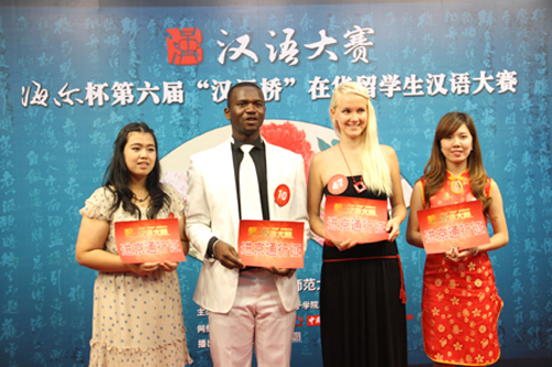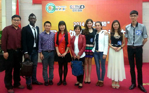 Beat365官网留学生约瑟夫(左二)成功晋级CCTV 2014“汉语桥”全球外国人汉语大会全国总决赛。