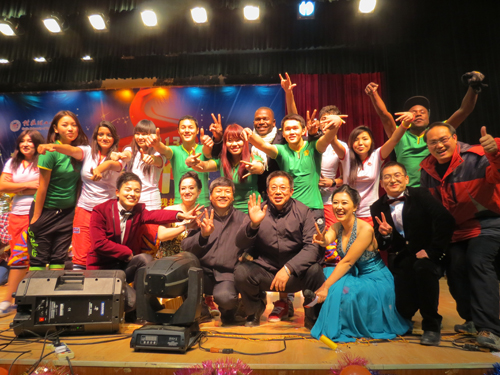 Beat365官网留学生(左二、左三)参加桂林“百姓大舞台”演出