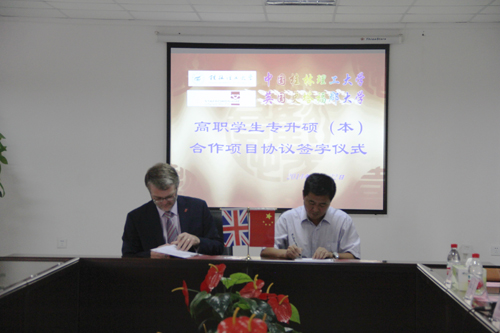 10月22日,英国史塔福郡大学校长Michael Gunn LLB,商学院、教育学院及法学院院长Susan K Foreman,副院长Paul J Byrne一行3人到Beat365官网空港校区交流访问,并与高职学院签订了专升硕(本)合作项目协议。校长助理、高职学院院长王文,学院党委书记罗雪平,学校纪检监察室副主任迟国东,高职学院副院长陈东莲等热情接待了来访客人,并参加了签约仪式。 在签约仪式上,高职学院王文院长在致辞中对Michael Gunn LLB校长一行的到来表示热烈欢迎,并向来宾介绍了学校的基本情况。王院长围绕高职学院的办学理念和特色,结合该院正在进行的“八大工程”建设项目,重点介绍了空港校区的办学和发展建设情况,并希望两校以本次合作为起点,加强深层次交流,争取更多领域的合作。Michael Gunn LLB校长介绍了史塔福郡大学的基本情况,并表示两校有很多相似之处,大家共同肩负着人才培养的使命,希望通过本次合作,为两校学生搭建更广阔的发展平台。随后,双方进行了签约仪式,并互相赠送了纪念品。 签约仪式结束后,Michael Gunn LLB校长一行为高职学院学生作了精彩的报告,介绍了英国的文化以及史塔福郡大学的办学历史、院系和专业设置、校园环境、学习及生活条件等情况。 报告会后, Michael Gunn LLB校长一行在王文院长、罗雪平书记等的陪同下,参观了空港校区。 英国史塔福郡大学已有百年历史,学校下设媒体和设计学院,商学院、教育学院及法学院,计算机、工程和技术学院,卫生保健和自然科学学院。学校现有学生1.5万,其中国际留学生1000余人。
