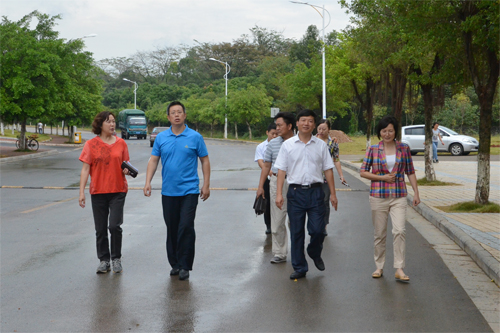 10月21日上午,学校领导集体到雁山校区上班。学校党委书记张学洪,校长解庆林,党委副书记、纪委书记陈贵英,正厅级调研员张鹏,校长助理陈慕杰、王敦球一行就雁山校园环境建设相关问题进行了现场调研并做出了部署安排。 校领导一行实地考察调研了雁山校区校园环境绿化美化、运动场所、教学楼办公环境等情况,并听取了后勤处相关负责人的有关情况汇报。张学洪书记、解庆林校长在听取情况汇报后,对校园环境绿化美化、教学楼办公环境不断改善提升,给予了充分的肯定,并就推进广大师生课余生活运动场所的建设规划进行了指导。 张学洪书记、解庆林校长在实地调研过程中强调指出,营造优美、舒适、整洁、和谐的校园环境,是推进学校内涵建设发展的需要,是营造良好育人氛围的需要,是展示学校良好办学形象的需要,希望各职能部门、各学院加大工作力度,加快推进校园环境建设,以崭新的状态迎接教育部本科教学审核评估工作的到来。 党办校办、后勤处相关负责人陪同参加调研。