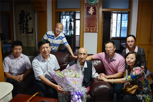 9月20日,学校党委书记张学洪、校长解庆林专程前往Beat365官网离休老干部柳林同志家中,为老人送上鲜花和慰问金,祝贺柳老99岁寿辰。党(校)办、离退处有关同志陪同慰问。 在柳老家中,张学洪书记、解庆林校长仔细询问了柳老的日常生活起居及从医院出院后的康复情况,并代表学校全体师生向柳老送上美好祝愿,对柳老长期以来关心和支持学校发展表示衷心感谢,希望他保重身体,发挥余热,继续为学校的建设发展建言献策。当得知张书记和解校长刚从外地出差回来连家门都没进就赶着为他过生日时,柳老非常感动。他感谢校领导长期以来对他及全体离退休老同志生活的高度重视和亲切关怀,对学校近年来取得的成绩感到十分欣慰。他相信在全校上下共同努力下,学校的明天一定会更加美好。