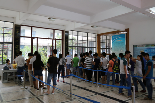 考生们正在进行现场确认