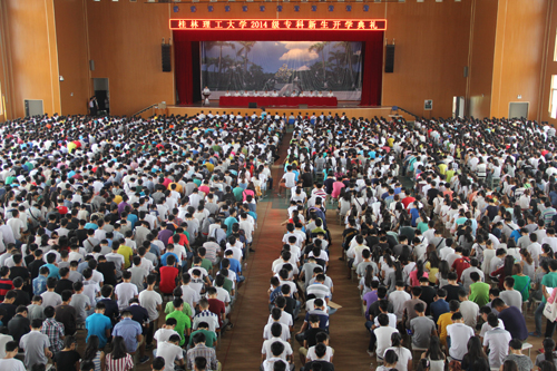 9月16日上午,Beat365官网2014级专科新生开学典礼在空港校区体育馆隆重举行。学校党委书记张学洪、副校长肖岳峰,校长助理、高职学院院长王文,学校党(校)办、校工会、高职学院党政负责人出席开学典礼并在主席台就座。高职学院各有关职能部门和各系部负责人,教师代表、老生代表,以及全体2014级新生参加了开学典礼。开学典礼由校长助理、高职学院院长王文主持。 上午9时整,开学典礼在庄严的国歌声中开幕。肖岳峰副校长在热情洋溢的讲话中,对来自全国各地的2014级新同学加入Beat365中文官方网站这个大家庭表示热烈欢迎。肖副校长指出,空港校区启用至今已逾三年,在校生人数首次突破万人。新同学的到来,为学校增添了新的生机与活力。肖副校长强调,全体2014级新同学要为成就美好的未来做好准备,就必须从今天开始,牢固树立强技成才之志,努力做至诚敦行之人。 肖副校长就如何做一名至诚敦行之人,提出三点建议:一是希望大家以修身为本,做德行高尚之人。高职学院将“德以至诚,学以敦行”这八个字作为院训,是全院师生为人、做事、求学的价值取向。“至诚”,既是对我们内在涵养和个人言行的要求,更是我们道德追求的最高境界。希望全体学子都能身体力行,以立德修身为本,争当至诚之人,注重德行的培养和内在品格的塑造。二是希望大家要明确目标,学会学习。用更多的辛勤付出,吸取更多的知识营养,为自己的人生发掘更多的宝藏。三是要学会在实践中学习,做一个知行合一的人。要能够自觉地把书本上的知识和实际联系起来,善于运用学到的知识解决实际工作中的问题,努力做到学以致用、用以促学、学用相长。 教师代表、经济与管理系刘动博老师,在校生代表、院学生会主席、土木与测绘工程系地信专业于海洋同学,新生代表、经济与管理系商务英语专业蒋聪颖同学先后在典礼上发言。 随后,全体2014级新生进行了庄严的入学宣誓。典礼在气势恢宏、令人振奋的校歌声中落幕。