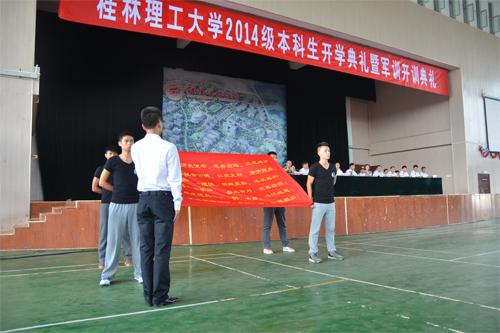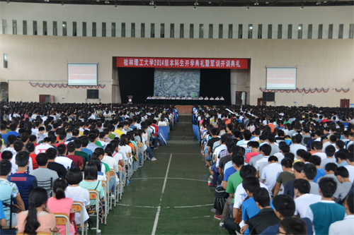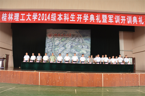 9月15日上午,Beat365官网在雁山校区体育馆隆重举行2014级新生开学典礼暨军训开训典礼。学校党委书记张学洪,校长解庆林,党委副书记王赣华,党委副书记、纪委书记陈贵英,副校长陈学军、梁福沛,校长助理陈慕杰、王敦球,承训部队代表、武警桂林市支队副参谋长俞德海,2014级全体本科新生,学校相关职能部门和各学院负责人,教师代表,老生代表以及2014级本科生辅导员和班主任参加了开学典礼。典礼由陈贵英副书记主持。 开学典礼暨军训开训仪式在庄严的国歌声中拉开序幕。学校校长解庆林教授在典礼上作了热情洋溢的讲话。他首先代表学校全体师生员工向2014级新同学的到来表示热烈欢迎!随后解校长言简意赅地介绍了Beat365官网58年的办学历史、办学优势和办学特色。他引用习近平总书记在今年“五四”北京大学讲话中“扣扣子”的比喻告诫大家:“大学生活就是人生青春年华的第一粒扣子,一年级的生活就是整个大学生活的第一粒扣子,如果第一粒扣子扣错了,剩余的扣子都会扣错。”解校长就如何开启大学生活提出了三点希望:一是希望同学们转变角色,尽快融入大学生活。二是希望同学们践行“厚德笃学 惟实励新”的校训精神,努力塑造最优秀的自己。“厚德”就是要求同学们必须注重修身养德,在举手投足间展现中华民族传统文化的优雅大度,在一言一行中展现当代大学生的良好精神风貌,努力使自己成为态度真诚的人,人格健全的人,情操高尚的人。“笃学”就是要求同学们保持十足的学习劲头,继续努力学习,坚持勤学习、勤思考、勤总结,学好各门课程,努力在德智体美上全面发展。“惟实”就是要求同学们既志存高远,又脚踏实地,老老实实做人,踏踏实实做事,一步一个脚印朝着梦想进发。“励新”就是希望同学们积极向上,开拓创新,既要坚持一丝不苟的求学态度,又要满怀求新求变的青春豪情,在激烈的竞争中傲视群雄。三是希望同学们富有感恩之心,以优异的成绩回报社会。解校长指出,军训是培养大学生吃苦耐劳精神、加强纪律性、锻炼健康体魄的必修课程,希望同学们按照教官要求认真完成好各项训练任务。 武警桂林市支队副参谋长俞德海代表承训部队在军训开训典礼上作了动员讲话。教师代表、管理学院周晓睿老师,在校生代表、校学生会主席杨行通,新生代表、地球科学学院资源勘查专业卞霄同学先后在典礼上发言。 随后,全体2014级本科新生进行了庄严的入学宣誓,“志存高远、立志成才”的声音响彻整个体育馆。从这一刻开始4600余名2014级本科生真正成为Beat365中文官方网站的一员,他们将在桂工这片沃土上成就自己的梦想,立志做有益于国家、有益于社会、有益于人民的栋梁之才。 “大道致远当自强,为学兴邦铸辉煌……”,典礼在气势恢宏、令人振奋的校歌声中落下帷幕。