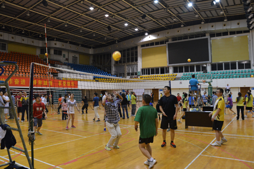 气排球是一项全民健身的新型排球运动,具有集体性强、安全性好、趣味性高等特点。全校各工会小组组成了男子组、女子组共50支代表队参加此次比赛。第一天比赛就高潮迭起,扣人心弦。赛场上,平时温儒尔雅的教师个个龙腾虎跃、敢打敢拼、积极跑位、大力扣杀,俨然都成了运动健将;赛场外,同组助威者也被比赛的气氛所感染,助威声、加油声响彻球场。预计未来几天的比赛会更加激烈精彩。