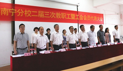 在圆满完成各项议程后,南宁分校二届三次教职工暨工会会员代表大会在雄壮的国歌声中胜利闭幕!