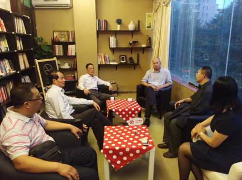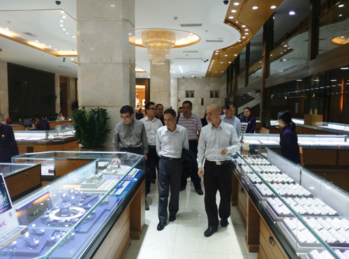 副厅级调研员张劲松一行分别受到了广东省有色矿山地质灾害防治中心主任蓝冰、沈阳荟华楼黄金珠宝首饰有限公司深圳公司总经理王天时、深圳市萃华珠宝首饰有限公司副总张伟良、深圳爱迪尔珠宝股份有限公司副总刘丽、千禧之星珠宝股份有限公司生产总监李宁、纬创资通(中山)有限公司人力资源处处长初炳蔚的欢迎和热情接待,双方进行了深入的座谈交流。张劲松感谢用人单位一直以来对Beat365中文官方网站的支持,向企业及校友代表介绍了学校的基本情况、人才培养和就业等状况,认真听取了走访企业和校友代表对Beat365官网人才培养、就业指导和产学研合作等方面的意见和建议。企业领导介绍了Beat365官网毕业生在企业的发展情况,肯定了Beat365官网毕业生扎实的专业基础和吃苦耐劳的精神,同时表示非常欢迎更多的毕业生加入企业,希望大学毕业生加入企业之后,要能找准自身的定位,适应在企业生根的过程,获得更大的发展。