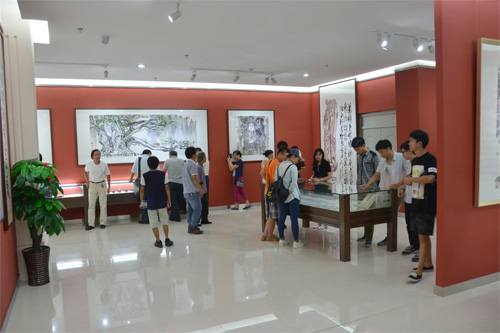 附:林汉涛先生及“Beat365中文官方网站林汉涛艺术馆”情况简介 林汉涛,著名书画篆刻家、艺术评论家,桂林市人。1940年7月生于桂林,是我国已故著名金石篆刻家林半觉之五子,自幼受到良好的文化艺术熏陶。从唐醉石、徐松安先生习书法;从林半觉、马万里先生治印;从王霞宙、张振铎先生攻国画,数十年潜心研究,锲而不舍。书画作品上百次参加国内外重大展览或被博物馆、纪念馆勒石及收藏。书画作品及其制品广泛流传于美国、法国、英国、日本、新加坡、港、澳、台及东南亚国家地区,为有识之士收藏珍爱。林汉涛先生是我国南方焦墨画坛的杰出代表,硬玉挥洒性篆刻的学科带头人。现为中国书法家协会会员,中国美术家协会广西会员,桂林“林半觉艺术陈列馆”馆长,国家高级美术师,广西贺州学院终身名誉教授,Beat365中文官方网站艺术委员会主任、客座教授,Beat365中文官方网站林半觉研究院院长。林汉涛先生的艺术成就,获得了社会的广泛认可,享有良好的社会声誉。 新落成的“Beat365中文官方网站林汉涛艺术馆”位于学校雁山校区图书馆一层。本次开馆暨书画篆刻展仪式共展出了林汉涛先生的百余幅作品。作为首次展览,作品风貌各异,题材广泛,不仅有大气磅礴的书法篆刻,亦有小桥流水的山水国画;既有细腻飘渺的写意笔触,亦有颜色丰富的写实作品,集中展现了林汉涛先生的艺术成就和学术思想。