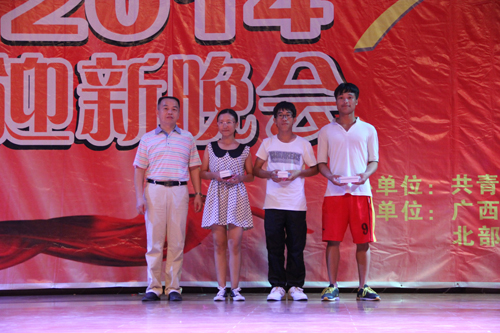肖岳峰副校长在晚会互动环节为获奖学生颁奖并合影
