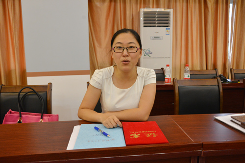 2013年学生工作先进单位代表、 理学院党委副书记郝文佳老师谈学生工作建设