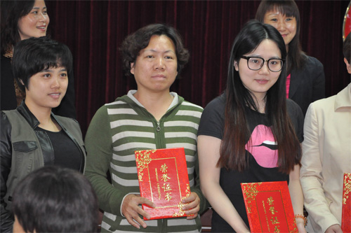 环境科学与工程学院党委书记卢英(中)在表彰大会现场