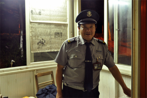 细雨静飘的午夜,三叉路口的岗亭里,站着一个挺拔的身影,他是学校的保安,40多岁,一脸慈祥,头发边缘隐约露出几缕银丝,身体虽然微微发福,腰板却挺得直直的。问他这么晚还在值班会不会很辛苦,大叔腼腆地笑了笑说,“不辛苦,其实嘛,作为一个保安,保一方平安是我们的责任。我也不敢在这个岗位上有任何的闪失,不然对不起学校,对不起你们。”保安大叔说,他的娃子也在上大学,看到我们就像看到自己的娃子一样,很是欣慰。 微凉的雨夜,一座静立的哨岗,一位朴实的保安大叔,一颗保学校平安的心。在我们酣眠的时候,保安大叔却要站一夜的岗,在黑暗中默默守护着我们。桂工的保安们,用他们的勤劳敬业,为我们营造安全和谐的校园环境。