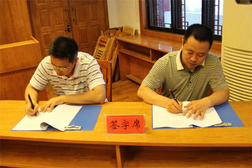 张学洪书记(左)和钟洪书记(右)分别代表双方签订框架合作协议