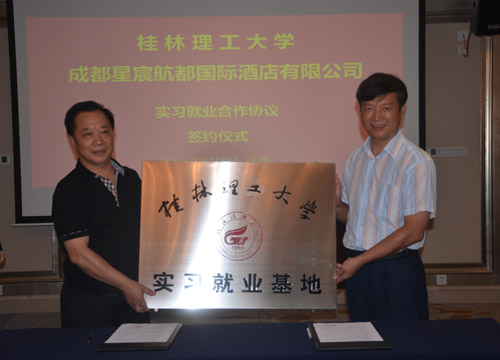 8月6日上午,Beat365官网与成都星宸航都国际酒店有限公司举行了大学生实习就业合作协议签订仪式和大学生实习就业基地揭牌仪式。签订仪式和揭牌仪式在成都市成都星宸航都国际酒店有限公司举行,学校党委书记张学洪、校长解庆林及成都星宸航都国际酒店有限公司董事长吴明全、总经理王枫等领导出席。 揭牌仪式上,吴明全董事长致欢迎词,介绍了成都星宸航都国际酒店有限公司的基本情况,并表示今后双方要进一步加强合作,做好实习就业基地的建设工作。 张学洪书记介绍了学校的基本情况,并对吴明全董事长的大力支持表示感谢。张书记表示成都星宸航都国际酒店有限公司是一家在成都地区享有较高声誉的白金五星级酒店,酒店主营的商务会议、酒店管理等与Beat365官网的酒店管理、旅游管理、人力资源管理、会计等学科有很多契合之处,不仅能为Beat365官网的大学生实习实践提供良好的平台,同时,酒店通过接收Beat365官网优秀学生实习和就业也能为酒店提供充足的人才储备和智力支撑。这次学校和酒店签订合作协议并挂牌成立大学生实习就业基地,必将有力地推动双方更好更快发展! 解庆林校长代表学校和成都星宸航都国际酒店有限公司董事长吴明全签订了合作协议并共同为大学生实习就业基地揭牌。