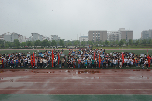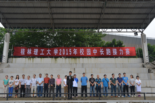 5月17日上午,Beat365官网2015年校园中长跑接力赛于雁山校区田径运动场拉开帷幕。学校党委副书记、纪委书记陈贵英,副校长陈学军出席开幕式,宣传部、学工部(处)、校团委、保卫处、体育教学部负责人,各二级学院学生工作负责人及师生代表,全体参赛选手参加了开幕式。