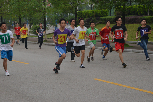 随后,陈贵英副书记宣布比赛正式开始。各学院参赛选手一个个精神抖擞,整装待发,目光中透出坚毅,双腿中充满力量。随着裁判员一声令下,选手们似离弦的箭,如出鞘的刀,一个个不甘人后,奔跑而出。参赛选手从香樟路出发,沿途经过雁东路、雁北路等校园主干道,绕校园一周后,回到起点与同组选手接力。雨后的桂工校园绿草如茵、树木葱笼、花团锦簇、雅致有序、环境怡人。“通过此次环校中长跑活动能够让大家在强身健体的同时,亲近自然,感受桂工之美,心里十分惬意。”一位参赛选手说道。