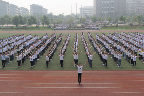 为贯彻落实十八届三中全会关于“强化体育课和课外锻炼,促进青少年身心健康、体魄健康”精神,积极响应团中央等四部门《关于开展大学生“走下网络、走出宿舍、走向操场”主题群众性课外体育锻炼活动的通知》号召,激发学生开展体育锻炼的积极性,促进学生养成良好习惯,磨练意志品质,提高身体素质,6月7日、11日,由学工处、团委联合组织的“跳动的青春”万人广播操比赛分别在雁山校区和屏风校区体育场顺利举行。 比赛中,各学院大一大二年级同学着装整齐,步伐坚定,口号嘹亮,队形新颖。随着音乐的节奏,同学们昂首挺胸,伸臂、扩胸、转体、踢腿、弯腰…动作娴熟到位,张弛有度,充分展现了青年学生的运动之美。经过激烈的角逐,化学与生物工程学院摘得桂冠;外国语学院、材料科学与工程学院荣获二等奖;旅游学院、测绘地理信息学院和土木与建筑工程学院获得三等奖。