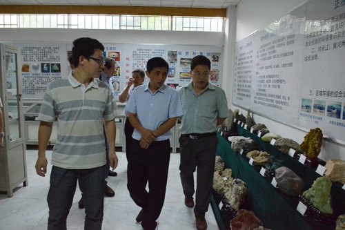吴志强副校长(右一)陪同卞文甫书记(中)考察地质博物馆