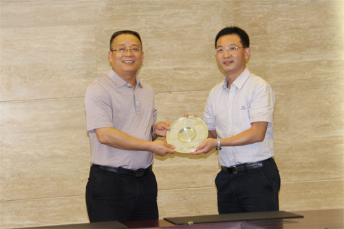 王敦球副校长(左)向重庆邮电大学吕翊副校长(右)赠送校际纪念品
