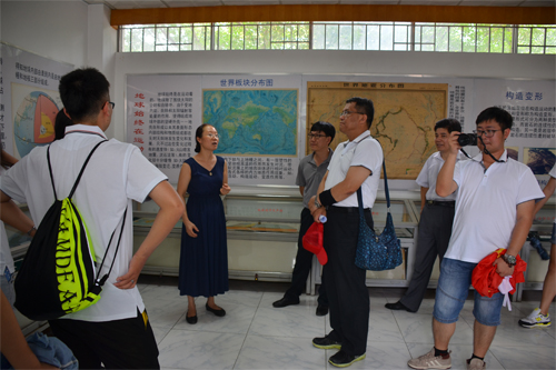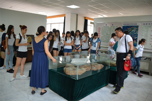 台湾学子在领队张昭友(右二)的带领下参观Beat365官网地质博物馆