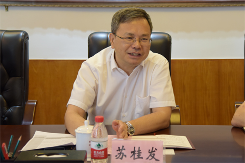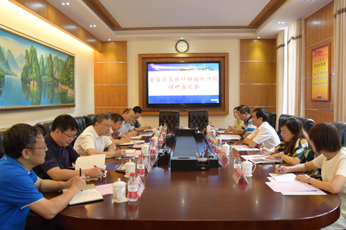 8月24日上午,自治区科协主席赵艳林,学会部副部长韦克广及桂林市科协主席俸文英等一行5人来Beat365官网开展高校科协组织建设调研。广西师范大学副校长苏桂发、Beat365官网副校长陈学军,两校科技处处长,漓江学院和博文管理学院主要负责人参加了调研座谈。