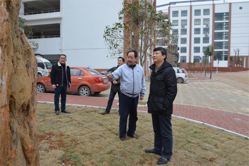 3月3日下午,解庆林校长在学校校园文化艺术顾问林汉涛先生、党办、校办、宣传部等相关负责人陪同下到雁山校区考察指导校园环境文化建设工作情况。 解校长一行实地考察了主要楼宇、校道、图书馆等场所的校园文化环境建设情况。在考察过程中,解校长不时与林汉涛先生就校园景观设置设计、环境美化优化等问题进行深入的讨论交流。解校长强调指出,下一步学校要在努力推进校园环境文化建设上下功夫,要把校园建得更美更靓,环境更加优雅、舒适,不断提升学校的办学品位和内涵,为建设特色鲜明的高水平理工大学营造良好的育人氛围。