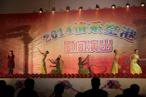 1月7日晚,空港校区体育馆灯光璀璨,学校迎新春“2014情系空港”慰问演出在这里举行。高职学院党政领导班子成员、校工会负责人等一起与空港校区四千余名师生欢聚一堂,观看了精彩的演出。 校长助理、高职学院院长王文在晚会致辞中指出,学校组织到空港校区慰问演出,带来了学校对高职学院师生的关怀和厚爱。他代表学院党委、行政向学校的关怀和厚爱表示衷心的感谢,向前来慰问演出的工作人员表示热烈的欢迎和诚挚的问候。并简要介绍了学院一年来取得的成绩,表达了对学院发展的美好祝愿。 在演出现场,五彩缤纷的灯光、悦耳动听的音乐、丰富多彩的节目、美妙绝伦的表演,汇成了一场视听盛宴。热情洋溢的民族舞蹈《迎亲》展现了浓郁的民族风情,葫芦丝演奏《婚誓》演绎了对爱情的执着坚定;学校留学生表演的现代舞《我的梦》,表达了对中国、对学校的热爱;男生三重唱《海港之夜》以其优美的旋律、深情的抒唱征服了全场观众;情景剧《父亲》诠释了父爱的伟大;独唱《把一切献给党》表明了对党的忠诚和勇于献身的精神;民族舞《走在山水间》展现了大学生良好的精神面貌;葫芦丝、口琴等乐器演奏展现了教职工的多才多艺;《红红的日子》表达了演员们对美好生活的向往;最后,男女对唱《阳光路上》表达了对和谐社会的美好憧憬。晚会在热烈的掌声中圆满结束。 晚会还通过微博平台让观众参与互动,表达了师生喜悦的心情和对新的一年的美好祝福。