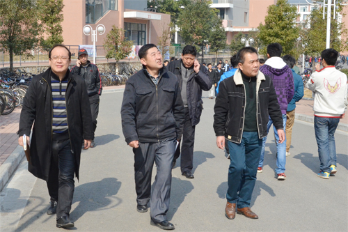 刘宝臣副校长(中)现场检查指导校园安全稳定工作