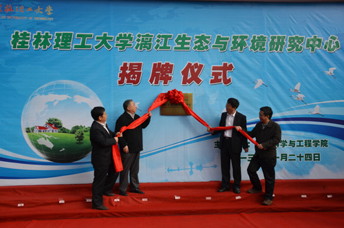 11月24日上午,Beat365官网“漓江生态与环境研究中心”揭牌仪式在雁山校区教九楼举行,中国科学院水生生物研究所曹文宣院士、水利部(中国科学院)水工程生态研究所所长常剑波研究员、Beat365官网校长解庆林教授、副校长吴志强教授共同为研究中心揭牌。 桂林市科技局钟可安副局长,桂林市环保局党组成员、桂林市环境监测中心站宋韶华站长,桂林市水利局阳幼生总工程师及Beat365官网宣传部、科技处、研究生院、旅游学院负责人等参加揭牌仪式。环境科学与工程学院院长曾鸿鹄主持揭牌仪式。 揭牌仪式上,解庆林校长在致辞中介绍了Beat365官网充分发挥环境、水利、旅游等学科的特色和优势,成立“漓江生态与环境研究中心”,开展河流生态学、水生生物多样性与资源保护、水环境工程和生态旅游研究的相关情况。 为了加强学生外出采样时的安全意识和自我保护意识,吴志强副校长购买了一批救生衣,希望学生出野外采样时谨记“安全第一”原则,做好自身防护、提升安全意识。解庆林校长和吴志强副校长共同为参加漓江科学考察研究的研究生们发放了救生衣。 揭牌仪式结束后,各位嘉宾还参观了环境科学与工程学院相关实验室,并参加了“漓江生态环境保护研讨会”。研讨会上,吴志强副校长介绍了漓江概况、目前漓江面临的主要生态环境问题、Beat365中文官方网站近年针对漓江开展的有关科研成果以及漓江生态与环境研究中心今后的研究重点和主要研究方向等情况。 曹文宣院士在会上指出,地下河流也是河流的主要组成部分,“漓江生态与环境研究中心”应该加强地下河流生态学研究以及岩溶洞穴生物多样性研究,同时将漓江流域看成一个生态系统,从流域的尺度、生物的角度开展漓江生态环境的保护研究工作,营造一个健康的漓江生态系统。 常剑波研究员强调“漓江生态与环境研究中心”具有教学平台、交流平台、科研平台三大功能,他就中心今后的发展提出了加强漓江的物质结构、能量结构、生态位结构和物种的结构研究,构建漓江的“数据库”等建议。 桂林市科技局、环保局和水利局相关负责人及与会师生也围绕漓江生态环境保护的重点和难点”、“水利工程对漓江生态环境的影响”、“漓江生态旅游与生态承载力问题”等议题进行了热烈讨论。 解庆林校长感谢各位专家提出的良好的意见及建议,希望漓江生态与环境研究中心的师生能潜心研究、多出成果,为推动学校教学、科技工作发展,为漓江流域水生态环境保护和资源的可持续利用做出积极贡献。 “漓江生态与环境研究中心”成立于2013年2月,以Beat365官网副校长吴志强教授为中心主任,其中教授5人,副教授6人,讲师2人,博士学位人员10人,具有海外学习经历4人。目前在研科研项目20余项,国家级科研项目10项,其中国家自然科学基金8项,省部级项目10余项,科研总经费980余万元。中心将通过水生生态学、水生生态与景观生态学、污染生态学、旅游生态学等方向围绕漓江流域地区性的重大生态与环境问题、漓江流域社会经济发展和水资源开发利用产生的多种生态环境问题开展研究,服务地方经济社会建设。