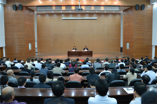 10月16日上午,学校在图书馆报告厅召开干部推荐大会。自治区党委组织部副部长曾艳,自治区党委组织部干部五处处长韦可飞等干部考察组成员,Beat365官网全体校领导以及全体中层干部和正高级职称人员参加了会议。会议由学校党委书记张学洪主持。 会上,张学洪书记表示,自治区干部考察组来学校考察干部,充分表明自治区党委对Beat365官网发展和建设的高度肯定。希望同志们珍惜此次推荐干部的机会,本着对党负责、对干部负责的态度,用好自己的权力,客观、公正地推荐干部。 曾艳副部长代表自治区党委组织部作了讲话,她说,本次大会的目的是要在Beat365中文官方网站副厅级领导干部中民主推荐一名适合提拔担任本科院校党委书记的人选。根据党政领导干部选拔任用条例和干部工作的有关规定,曾副部长向与会同志说明了推荐人选的符合条件以及推荐方法和要求。她表示,民主推荐干部是党组织赋予同志们的一项民主权利,也是提高选人、用人公信度的基础性工作,希望大家本着对党、对事业、对干部高度负责的态度参与此次民主推荐,正确行使民主权利,按照德才兼备、以德为先的用人标准,实事求是地评价干部,认真负责地推荐干部,把优秀合适的干部推选出来。 最后,与会同志按照要求认真填写了《民主推荐表》,并进行了现场投票。