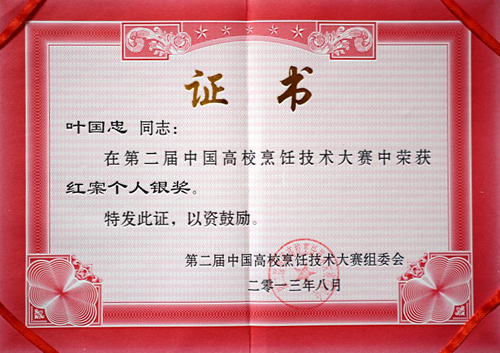 第二届中国高校烹饪技术大赛红案个人银奖
