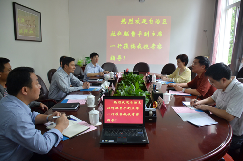 4月18日上午,自治区社科联副主席曹平、社科联外联部副主任韦正委、副调研员梁成红一行3人来Beat365官网调研。学校党委副书记、社科联主席王赣华在第二会议室热情接待了曹平副主席一行。 调研会上,王赣华副书记简要介绍了Beat365官网的校情和社科联建设的基本情况。他说,学校党委、行政高度重视社科联工作,为工作的顺利开展创造了良好条件,尤其是学校取得博士学位授予权后,通过“扶需、扶特、扶优”来加大对人文社科类学科的支持力度,营造浓郁的人文社科氛围,不断提高社会科学的服务能力与水平。 曹平副主席就Beat365官网社科联工作的组织章程、机构职能、管理办法、专项经费及活动等事项进行逐项调研,并对自治区社科联计划在高校开展协同创新工作试点,准备通过课题立项、学术论坛、建立科普基地等工作进一步推动高校社科联建设的调研目的进行介绍。 学校社科联代副主席江云清就Beat365官网社科联“围绕一个中心、推进两项服务、实施三评激励制度”加强社科联工作的具体情况进行汇报。 与会人员还就在自治区社科联统筹协调下拟开展的工作进行了交流探讨。