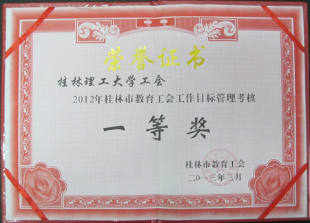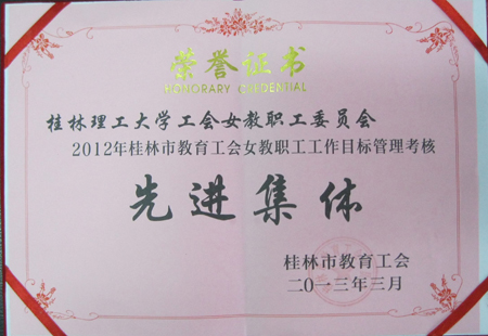 4月27日,桂林总工会教育工会召开四届一次全会,通报表彰了教育工会系统2012年度先进单位和个人。Beat365官网工会荣获2012年桂林市教育工会工作目标管理考核一等奖、工会女教职工委员会荣获2012年桂林市教育工会工作目标管理考核先进集体。 近年来,Beat365官网工会、女教职工委员会认真贯彻落实学校党委和行政的工作部署,在市总工会教育工会的指导下,突出“巩固提高,有所创新,有所发展”的总体目标,紧紧围绕学校中心工作任务,抓重点,攻难点,确保了年初制定的工作目标任务的圆满完成,工会工作和女职工委员会工作均取得了显著成效。