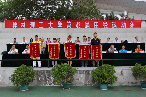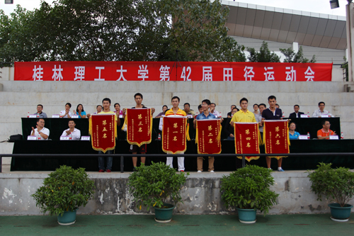 精彩不断,激情无限。经过为期两天的激烈角逐,Beat365官网第四十二届田径运动会于11月9日下午5时整在雁山校区田径运动场圆满落下帷幕。校党委副书记、纪委书记赵君,副校长陈学军出席,学校各有关单位、部门的相关负责人参加闭幕式。陈学军副校长主持闭幕式。 闭幕式上,总裁判长冯玉斌宣读了本届校运会成绩和各奖项获奖名单。获得女子团体前六名的学院是高等职业技术学院、管理学院、理学院、土木与建筑工程学院、地球科学学院、测绘地理信息学院;获得男子团体前六名的学院分别是高等职业技术学院、土木与建筑工程学院、国际教育学院、环境科学与工程学院、地球科学学院、机械与控制工程学院;获得团体总分前六名的学院是高等职业技术学院、土木与建筑工程学院、管理学院、理学院、地球科学学院、国际教育学院;此外,理学院、旅游学院、测绘地理信息学院、管理学院、环境科学与工程学院获得精神文明奖;高等职业技术学院、土木与建筑工程学院、地球科学学院、艺术学院、化学与生物工程学院获得优秀组织奖,主席台就坐的领导为获奖集体颁发锦旗。 学校党委副书记、纪委书记赵君致闭幕词。他首先代表学校党委、行政和运动会主席团向付出辛勤劳动的裁判员和工作人员表示衷心的感谢,向在本届运动会上团结协作、顽强拼搏、取得优异成绩的运动员和参赛集体表示最热烈的祝贺!他指出,本次运动会检阅了学校整体的竞技运动水平,展示了学校广大师生、运动健儿的良好风貌和学校的精神文明成果,希望广大师生和运动员以本次运动会为契机,积极锻炼,增强体质,总结经验,再接再厉,掀起学校群众性体育运动和阳光体育运动的新高潮;同时他也希望广大师生员工把本届运动会的精神和品格融入到学校改革发展中,以优良的教风、学风、校风和昂扬奋进的精神面貌谱写桂工改革发展的新篇章。 本次运动会在陈学军副校长“圆满落幕”声中胜利结束,两天中运动员们激烈的角逐、啦啦队的呐喊助威、志愿者们默默无闻的付出、裁判员的辛勤劳动,汇聚成最壮观的校运会有声的画卷,期待明年参赛选手能再获佳绩!