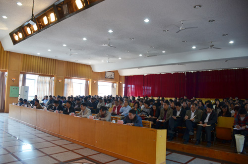 目前,学校党的群众路线教育实践活动已进入“查摆问题、开展批评”环节,为了全面对照检查,深入剖析,查找“四风”,推动教育实践活动深入开展,10月23日上午,学校在屏风校区南校区礼堂举办了党的群众路线教育实践活动专题党课。自治区党的群众路线教育实践活动第14督导组组长、自治区党校原常务副校长、广西行政学院原院长张敦教授作了题为“作风建设与提高党的执政能力”专题党课报告。全体校领导、中层领导干部、党委职能部门干部、各教工党支部书记及部分学生党支部支委参加党课学习。专题党课由学校党委书记张学洪主持。 张敦组长从党的执政能力取决于多种因素、群众路线是提高党的执政能力的法宝、切实转变作风才能坚持党的群众路线等三个方面阐述了开展党的群众路线教育实践活动的重要意义、原则和方法。张组长结合苏东解体等多个案例,解读了党的执政能力主要取决于党的先进性、合法性、规律性等因素。通过列举史例,阐明我党之所以能在抗日战争、解放战争中取得胜利,是因为党充分调动人民群众的积极性,赢得人民的大力支持。结合国内外、区内外的实例,张敦组长指出调动人民群众的积极性必须依要融入群众、尊重群众、相信群众、服务群众,从而提高党的执政能力。 张敦组长指出,党的群众路线,关系到党和国家事业的兴衰成败,党员同志的作风建设尤为重要,整治“四风”,推进党的作风建设,必须从根本上抓起,一是要变观念;二是要增能力;三是要转方式;四是要建制度。张敦组长强调,共产党员尤其是党员领导干部一定要严守为民务实清廉的信条。为民是宗旨,要牢牢把握住幸福红线、发展蓝线、生存底线三条线;务实是风格,要言必行、行必果,要讲科学、求实效;清廉是修为,掌握公权的人,必须坚守精神家园,才能时时清醒,一生快乐。 张学洪书记在总结讲话中指出,张敦组长的报告内容丰富,从专家的视角和理论的高度将理论与实践相结合、历史和现实相结合,分析透彻,发人深省,对全校党员及领导干部今后如何更好地践行党的群众路线教育实践活动有着深刻的启发意义和很好的指导作用。希望课后大家继续深入学习,把讲话精神深刻领会并贯彻到各项工作中去,切实将学校党的群众路线教育实践活动不断推向深入。