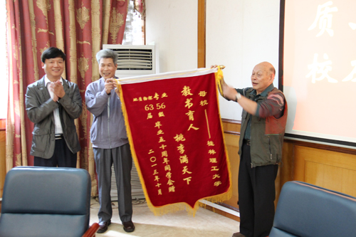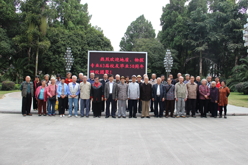 10月16日,Beat365官网地质、物探63届24名校友回母校参加毕业50周年纪念活动。学校校长解庆林和他们亲切座谈,热烈欢迎63届校友回家,参加座谈会的还有10余位当年的任课教师代表。 在上午的座谈会上,解校长从学校的办学历史谈起,介绍了学校五改归属、十易校名的曲折历史和现在所取得的辉煌成就。解校长说,63届校友中的大部分都是1956年Beat365官网建校时就入校学习的(由于历史的原因到1963年毕业),还有不少63届校友直接参与了学校教学楼(屏风校区教四楼)以及其他基础设施的建设,同学习同劳动,打下了扎实的理论基础和实践功底;毕业后,大家奔赴到全国各地,在各自的工作岗位上艰苦奋斗,创造出了辉煌的业绩,为母校争得了荣誉。解校长代表学校党委、行政对63届校友为学校发展和建设所做出的巨大贡献表示感谢,并祝愿他们身体健康,阖家幸福。 63届校友们纷纷发言,感谢母校和老师们的培养之恩,并各自回忆了当年毕业后被分配到全国各地,克服恶劣的地理环境和艰苦的生活条件,为祖国的经济建设和地质勘探奉献青春年华的峥嵘岁月。他们现在看到母校发展越来越好,感到十分欣慰和高兴。 老教师代表们也齐聚一堂,纷纷发言,共叙师生情,追忆过去的青春岁月。原桂林市政协副主席、原民革桂林市委主委、物探56级班主任王玉梅老师说,63届校友们一直勤勤恳恳、兢兢业业地奋斗在祖国地质勘探工作的第一线,为祖国的经济建设发展贡献力量,他们自强不息、艰苦奋斗、无私奉献的精神值得每一个桂工人学习。 下午,63届校友一行还重游了母校屏风校区,重温了当年青春年华的美好时光,还到雁山校区参观,亲身感受学校的巨大变化,并合影留念。