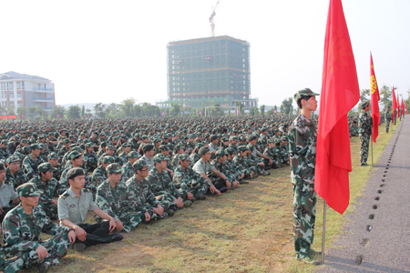 9月21日上午,Beat365官网高职学院2013级新生军训开训动员大会在空港校区运动场举行。崇左军分区凭祥边防三团副团长尹保国应邀参会,该院党政负责人出席动员大会并在主席台就座。2013级全体新生参加动员会。 早上8:30,动员大会在庄严的国歌声中拉开帷幕。院长王文作了开训动员讲话,向即将参加军事集中训练的2013级全体新同学表示衷心的祝贺和亲切的慰问,向承担军训任务的崇左军分区的领导和全体教官表示诚挚的谢意。他强调,军事训练是法律赋予在校大学生的一项光荣义务,是学校教育的一种特殊教育形式,希望高职学院全体2013级新同学要树立正确的态度,按照军人的标准严格要求自己,听从教官指挥,虚心向教官学习,争取优异的成绩,圆满完成各项军训任务。 崇左军分区凭祥边防三团副团长尹保国对参加军训的新同学提出了四点要求,希望同学们通过本次军事训练要增强国防观念,严格遵守各项纪律,锻炼吃苦耐劳的品质,加强培养团队协作精神。 动员大会上,新生代表和教官代表先后上台作了发言。院党委书记罗雪平宣读2013级新生军训团干部任命文件。动员大会在嘹亮的军歌声中圆满结束。