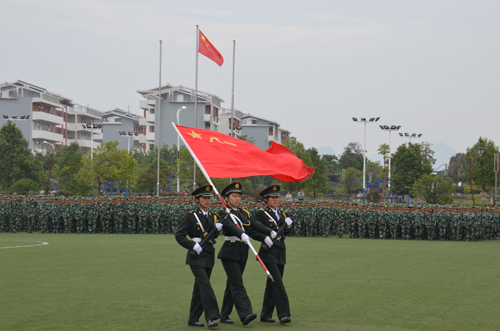 9月30日上午,天高云淡、风和日丽,Beat365官网雁山校区运动场上呐喊声声、军乐激昂,4500余名新生身着绿色军装,精神抖擞、昂首列队,2013级新生军训会操表演在这里隆重举行。学校校长解庆林,学校党委副书记、纪委书记赵君,桂林市武警支队副支队长丁仲溪出席会操表演大会。学校党(校)办、宣传部、学工部、校团委、教务处、后勤处主要负责人和各学院党委副书记一起在主席台观礼。 飒爽英姿秋点兵,斗志激昂威震天。早上九点三十分,经过11天严格的军事化训练,新生们以饱满的精神、飒爽的英姿、整齐的队列,迎接他们的军训成果展示。 在激昂的《中国人民解放军进行曲》声中,2013级新生军训会操表演拉开帷幕。当军旗缓缓进入演练场,全场起立,神情庄重。赵君副书记在桂林市武警支队曾维飞中尉的陪同下依次检阅各连队,阅兵场上,新生同学口号嘹亮、士气高昂、英姿勃发。 在军旗的指引下,各方阵昂首阔步、整齐划一地从主席台前走过,接受检阅,整齐的队列和嘹亮的口号声,原地踏步,踢正步……各连队动作都有板有眼,展现了Beat365官网新生不畏艰苦、一往无前的气概,颇有钢铁之师的风范。 分列式结束后,由男生连组成的擒敌拳表演方块队、女子连组成的列队操表演方队进行了汇报表演,军训教官们也进行了近身格斗表演……运动场上震耳欲聋,展示了新生青春无敌,勇往直前的精神面貌,精彩的表演博得现场观众阵阵掌声。 会操表演后,赵君副书记宣读了《关于表彰2013级新生军训先进集体和先进个人》的决定,共有10个连队、9位军训指导员和267名同学获表彰。此外,还有102名同学获“强国梦、强军梦”征文表彰。 桂林市武警支队副支队长丁仲溪代表承训部队发表讲话,他代表全体承训官兵对军训取得圆满成功表示热烈的祝贺,充分肯定了Beat365官网2013级新生在军训过程中体现出的团结协作、坚持拼搏的精神,希望同学们增强国防意识,关心和支持国防和军队现代化建设,用聪明才智为祖国的国防建设注入新的活力。 最后,解庆林校长代表学校向关心、指导和支持Beat365官网军训工作的武警桂林市支队的领导和广大承训官兵致以崇高的敬意和衷心的感谢!对同学们在军训中取得的良好成绩表示热烈的祝贺!同时,他对全体2013级新生提出希望,希望同学们一是要巩固军训成果,保持优良品质,把军训成果转化为优良的学风、校风,争取更大的荣誉和成绩。二是要弘扬爱国主义,勇于承担责任,为国家富强、民族振兴贡献自己的力量。三是要珍惜军训经历,继续拼搏进取,珍惜美好的青春时光,在学习生活中努力拼搏、奋发进取。 本次汇报表演在雄壮的国歌声中落下帷幕,为期11天的军训生活成为了2013级新生大学生活的完美开端。