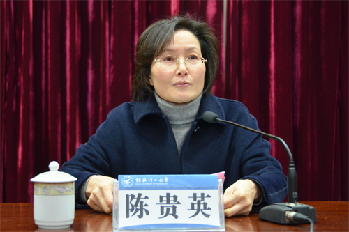 陈贵英副书记代表学校党委和行政向与会学生代表通报2013年度学校工作情况