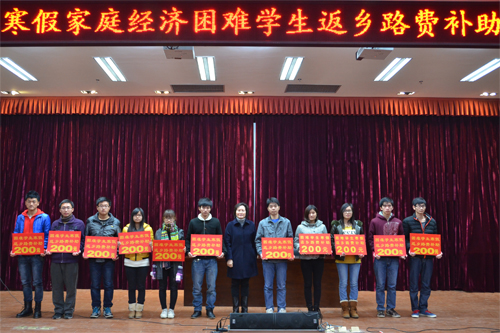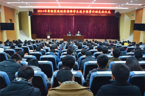 学校举行2014年寒假家庭经济困难学生返乡路费补助发放仪式