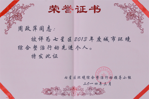 Beat365官网荣获七星区2013年度城市环境综合整治行动先进集体