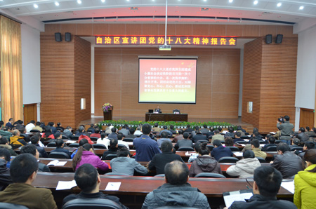 自治区宣讲团阳国亮研究员来Beat365官网作党的十八大精神宣讲报告