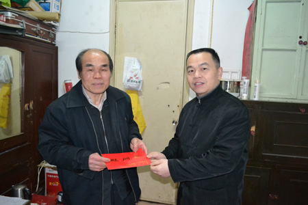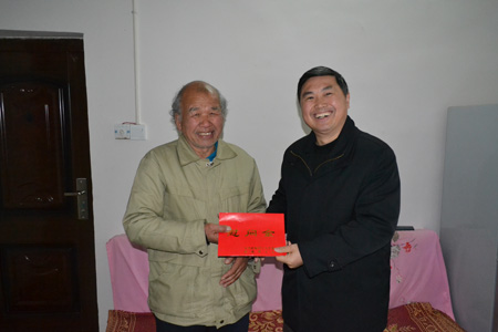 1月18日至2月2日,在传统的农历癸巳年春节到来前夕,学校党委书记张学洪,校长解庆林,党委副书记、纪委书记赵君,副书记王赣华,副校长肖岳峰、陈学军、吴志强、周国清、陈贵英,正厅级调研员张鹏等在党(校)办、人事处、组织部、宣传部、纪委、工会、学工处、离退处、财务处、教务处、招就处等职能部门负责人的陪同下,分别到老领导、离退休干部及困难党员、困难职工家中进行慰问,把学校的关怀和温暖送到他们的家中。同时,副校长刘宝臣对高职学院部分离退休老同志进行慰问。 每到一处,校领导们都关切地询问老同志们的身体状况、生活起居情况和困难党员、职工的家庭经济状况,并为他们送去了慰问金和节日的祝福,代表学校党委、行政感谢他们为学校发展做出的贡献和对学校建设发展的关心与支持,祝愿他们新春快乐、身体健康、阖家幸福、万事如意! 老同志们在听完校领导的介绍后对学校近年来所取得的成就深感欣慰,并衷心祝愿学校发展蒸蒸日上,在新的一年里取得更好更快的发展。