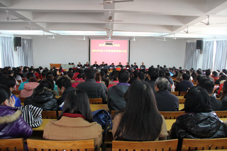 1月19日下午,高职学院2012年度工作总结暨表彰大会在空港校区8208多媒体教室召开。副校长刘宝臣、高职学院党政负责人出席会议。该院全体教职员工参加。会议由该院党委书记罗雪平主持。 会上,该院院长王文总结高职学院2012年工作取得的主要成绩,并就2013年工作的总体思路进行了安排部署。 副校长刘宝臣在讲话中对高职学院广大教职员工一年来为学院建设发展所付出的辛勤劳动和无私奉献表示衷心感谢,并向全院师生员工致以新年的美好祝福。刘副校长强调,高职学院深化改革,不断加强内涵建设,突出知识与技能并重的人才培养模式,以培养技能型人才为己任,把实践教学与区域发展需求相结合,重点在实践育人方面大作文章,争取用三到五年的时间把该院建设成为高水平的高职学院。他要求高职学院全体教职员工要刻苦钻研,不断提高业务能力和综合素质,努力为学院科学发展作出贡献。 会上,院长王文分别与该院各系负责人签署了2013年就业工作责任状,2013年就业工作全面启动;会议还对2012年度荣获全国、自治区、学校及学院各项奖励的先进集体和个人进行了表彰。