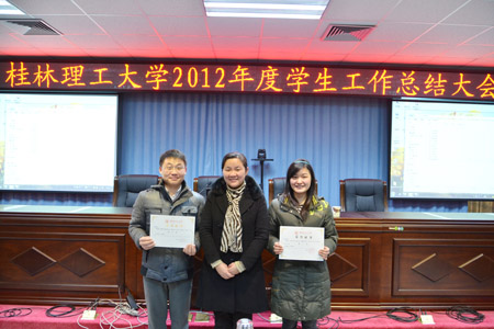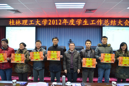 1月18日下午,Beat365官网2012年度学生工作总结大会在雁山校区科技楼A406会议室召开。学校党委王赣华副书记以及全体学工人员参加了会议。会议由学生工作部(处)邓国彬副部(处)长主持。 会上,学生工作部(处)、校团委以及各二级学院分别对本年度的工作进行了总结汇报。与会领导还为2012年学工系统气排球比赛获奖团队、第二届辅导员职业技能大赛获奖团队代表进行了颁奖。 王赣华副书记在总结大会上发表讲话,充分肯定了2012年学生工作取得的成绩,对学工干部的辛勤付出和努力工作表示衷心的感谢。他指出学生工作要继续加强“六个重大方面”的工作,即安全稳定、学风建设、辅导员队伍建设、学生管理技术平台建设、学生骨干队伍建设、学生社区管理与创新等,并继续关注由此展开的十个方面问题,号召全体学工人员发扬“学工精神”立足岗位,求真务实、真抓实干、开拓进取,不断推动学生工作上台阶、上水平,为建设特色鲜明的高水平理工大学做出更大的贡献。