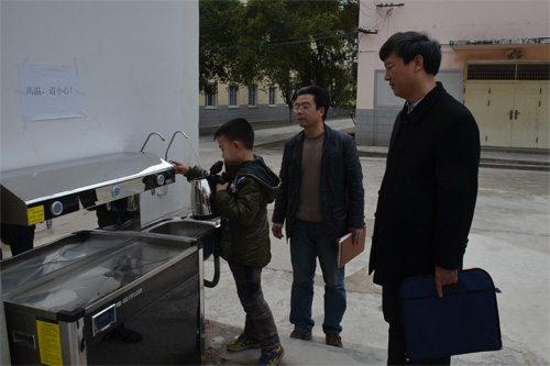 看到有小朋友接水,解校长详细询问学生饮水安全问题