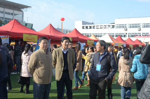 王赣华副书记(中)、吴志强副校长(左)现场指导就业工作
